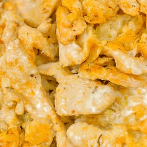 Slices of chicken, bell peppers, onions and tomatoes, simmered with our creamy sauce. Served with rice, refried beans and tortillas