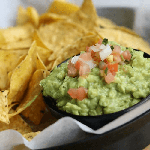 Flour tortilla filled with cheese and spinach and chicken. Served with guacamole salad and choice of rice or beans