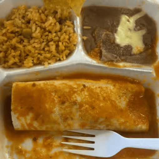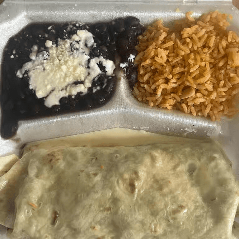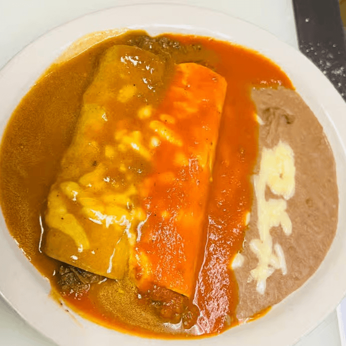 Burrito beef, Chile relleno cheese choice of rice or beans