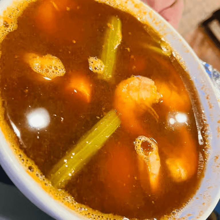 Traditional Mexican soup served with tripe, hominy, lime, and onions in a tasty broth with a red chili pepper base.