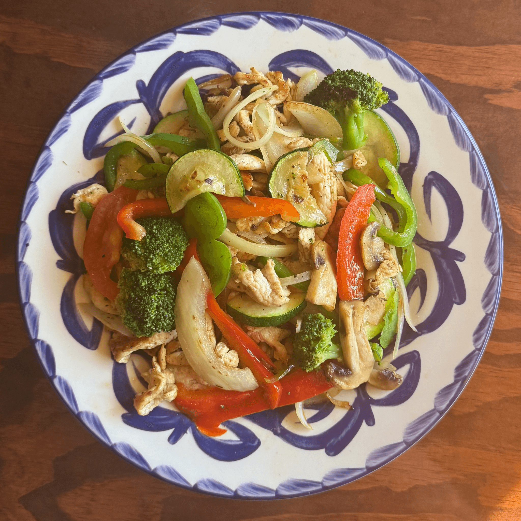 Grilled bell peppers, onions, tomatoes, zucchini, broccoli, and mushrooms with your choice of meat. Texanas* (means all three meats, grilled chicken, steak & shrimp).