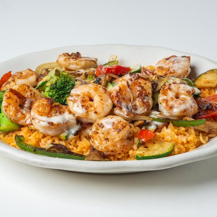 (10) Grilled shrimp and grilled onions mixed in our creamy chipotle suace. Served with rice, lettuce, pico de gallo, and avocado.