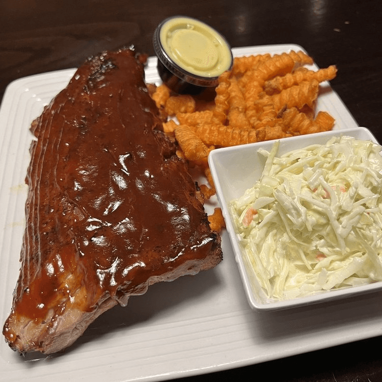 White Marble Farms all-natural ribs slow cooked and basted with 66 BBQ Sauce. Served with coleslaw and French fries